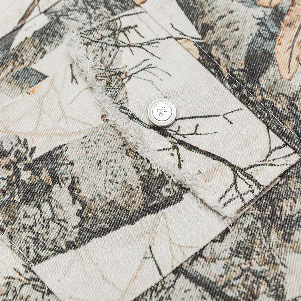 Jungle Branch Print Denim Jacket Coat Men's