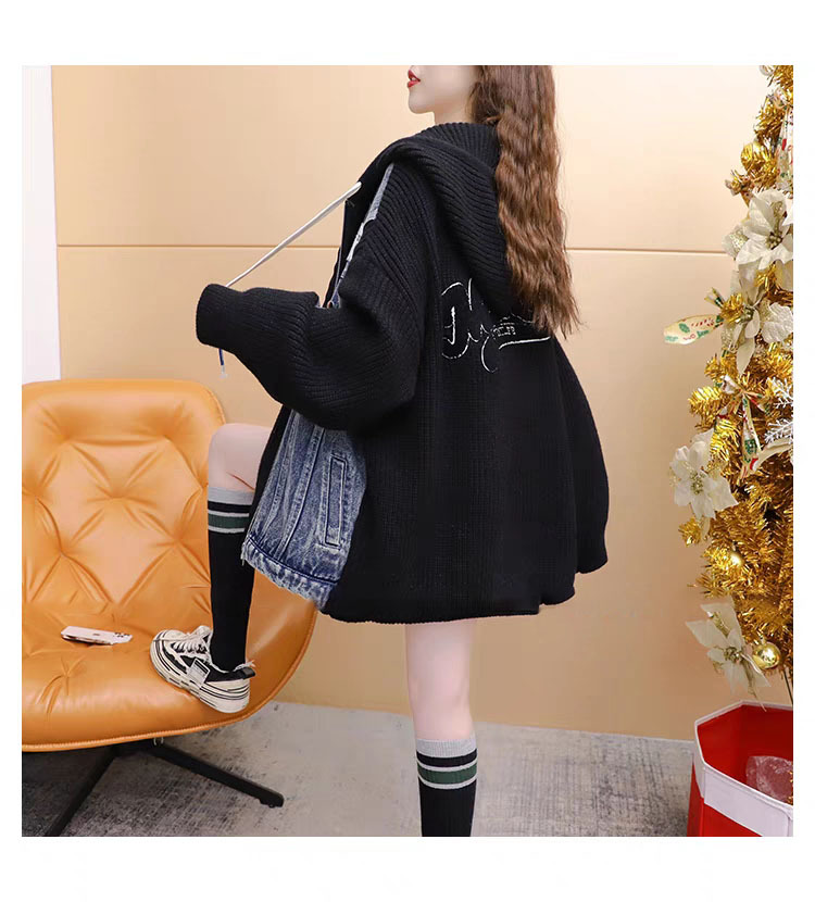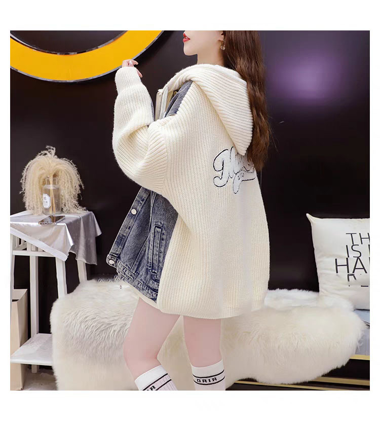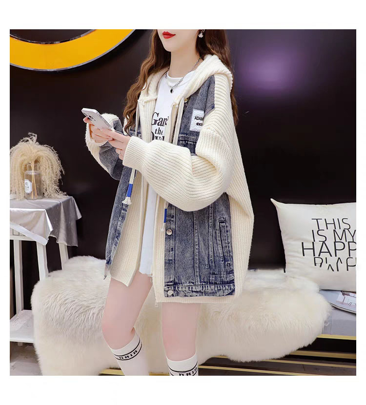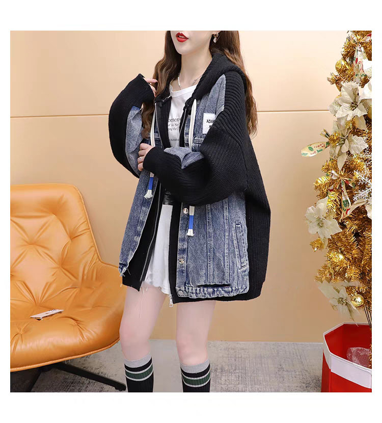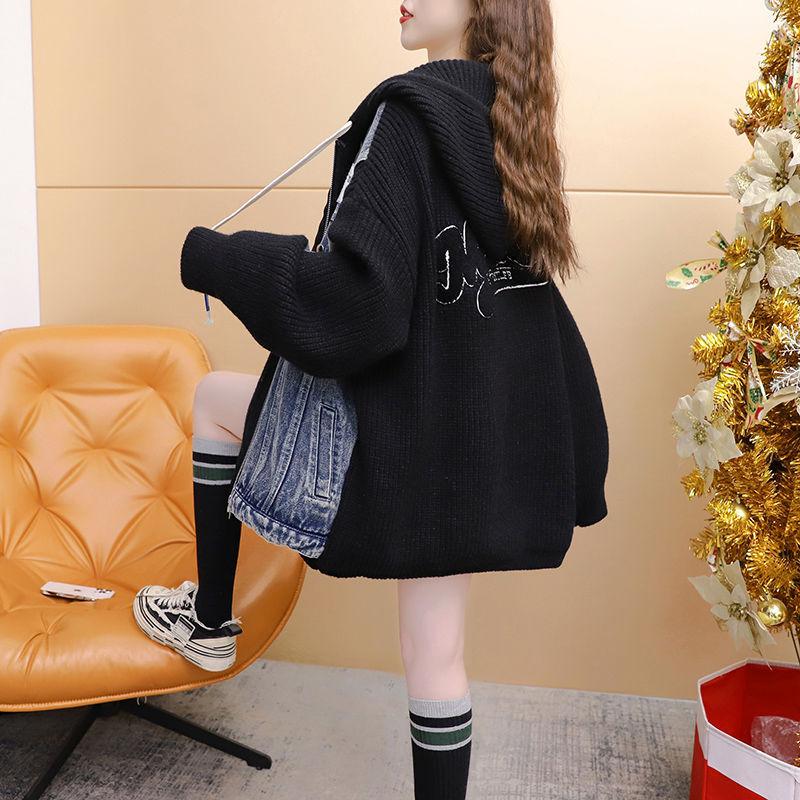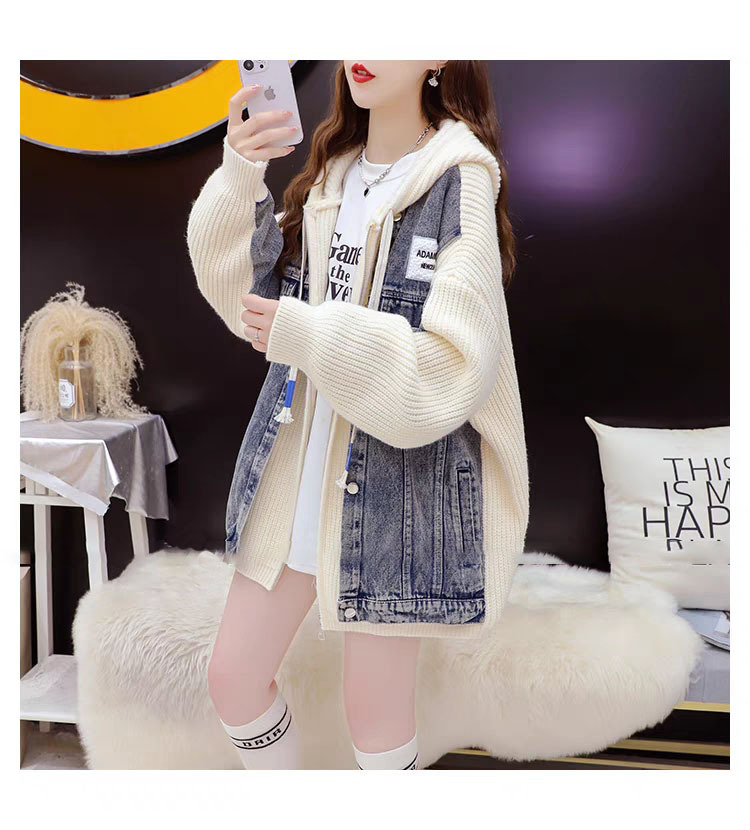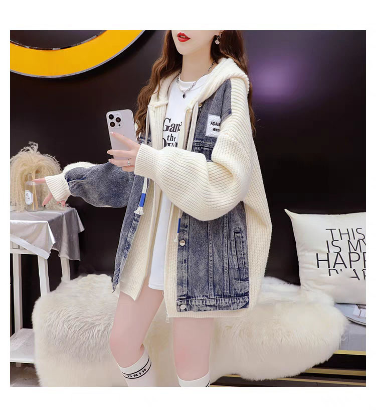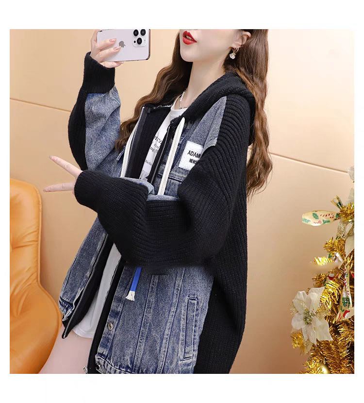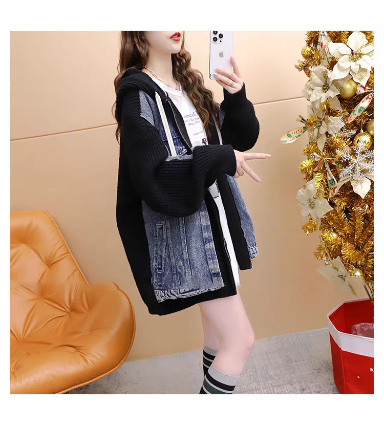 Loose False Two-Piece Design Zipper Casual Knit Cardigan for Women, Autumn/Winter Stitched Knit Outerwear